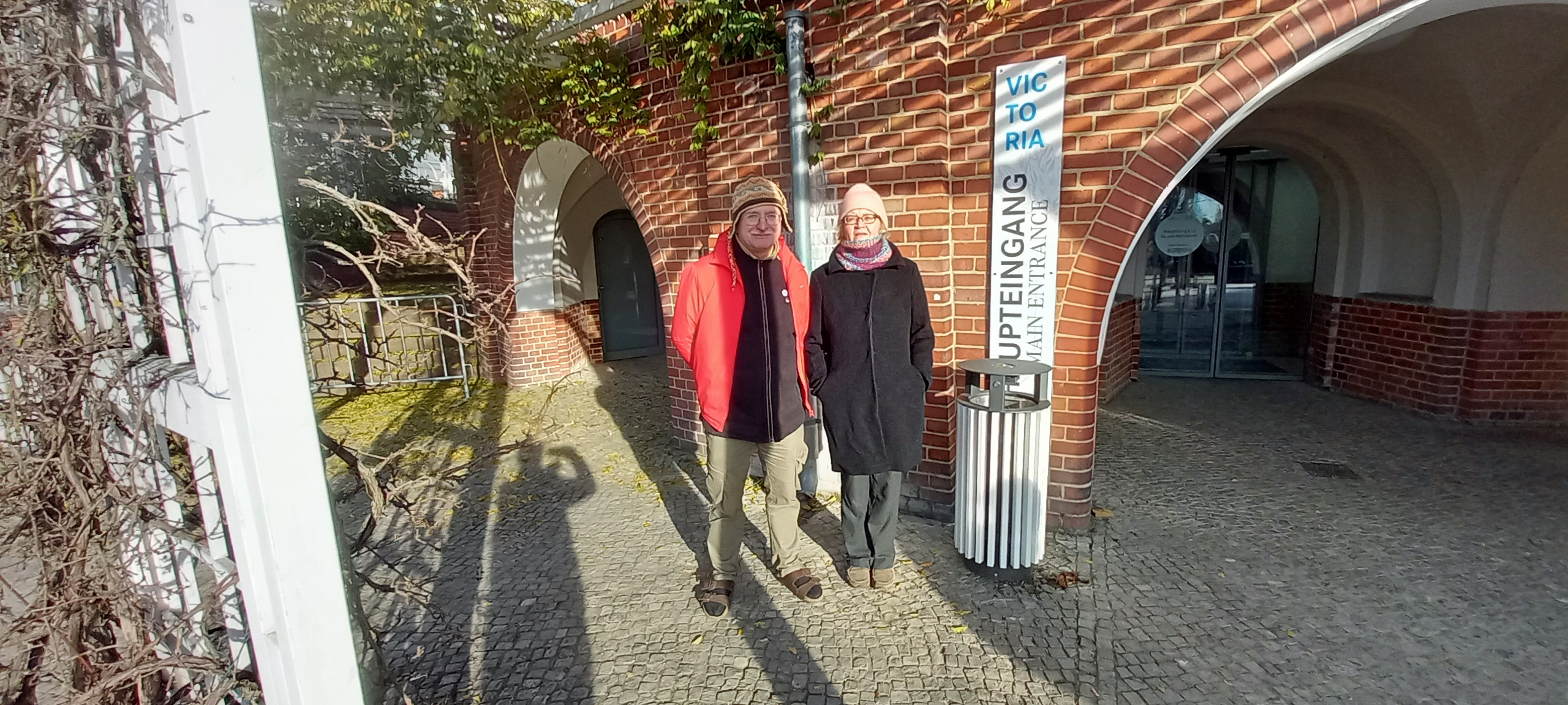 hier stehen sabine und ich vor dem großen tropenhaus.